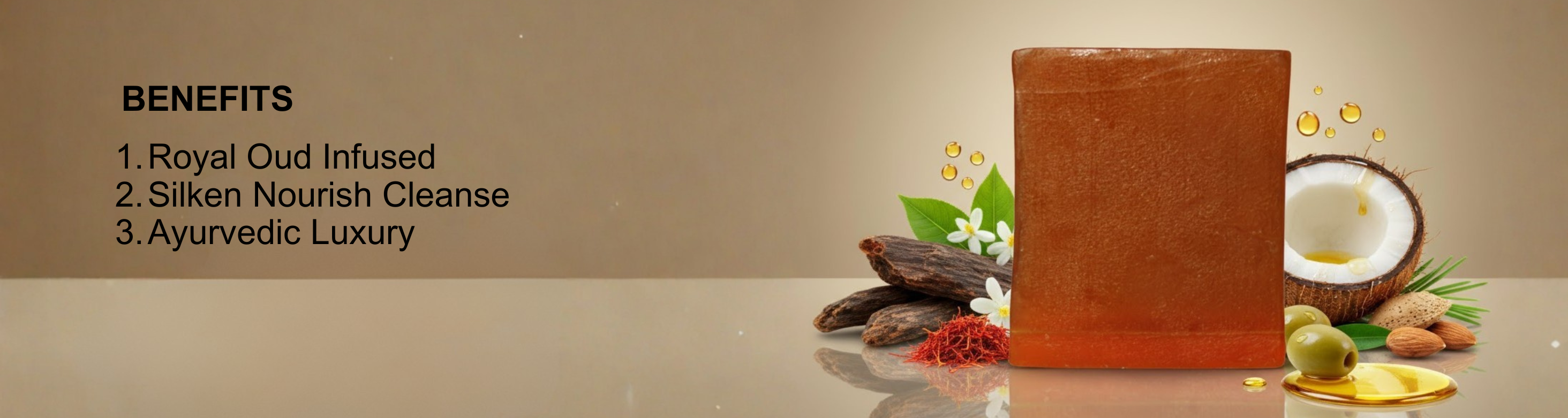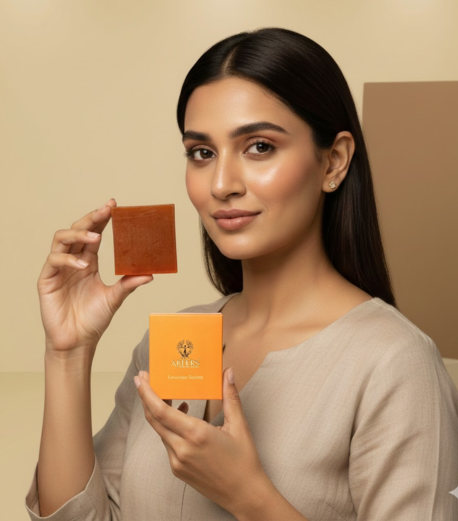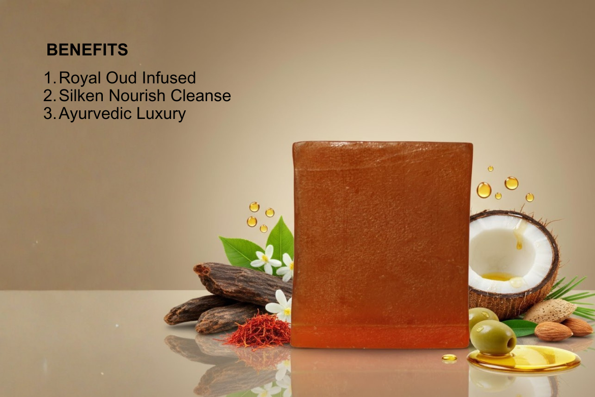 Handmade oud, kesar & kewda soap for gentle cleanse and royal fragrance.