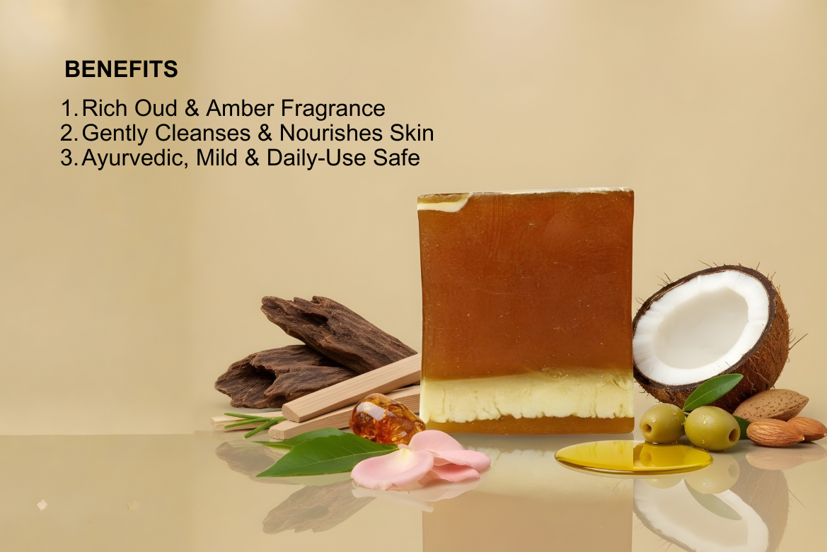 Handmade Oud Mukhallat soap for gentle cleanse and a bold, royal fragrance.
